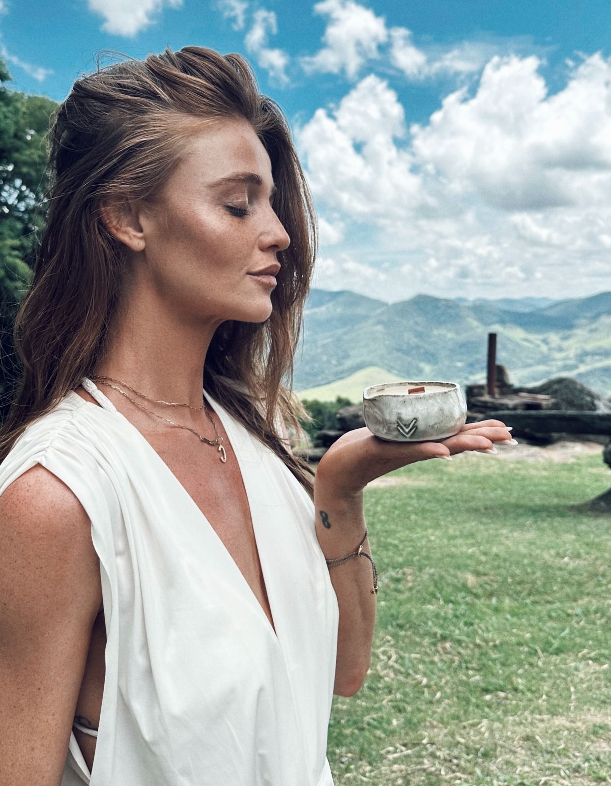 Adepta de rotina repleta de hábitos saudáveis e naturais, a modelo divide-se entre a carreira na moda, a maternidade, os ensaios para ser musa da Salgueiro no próximo Carnaval, e a paixão pelos hábitos saudáveis. Assim, lançou o empreendimento de produtos naturais. "Tudo é feito artesanalmente na minha própria casa. As velas vão de aromas como canela à bergamota, figo ou capim-limão. Acredito no poder da natureza para ajudar e melhorar o nosso corpo, mente e alma", afirma. "Assim nasceu a 'Vibe Burning Essentials', com as velas e óleos que estimulam o poder dos sentidos com objetivo de trazer benefícios físicos e mentais", reflete.
